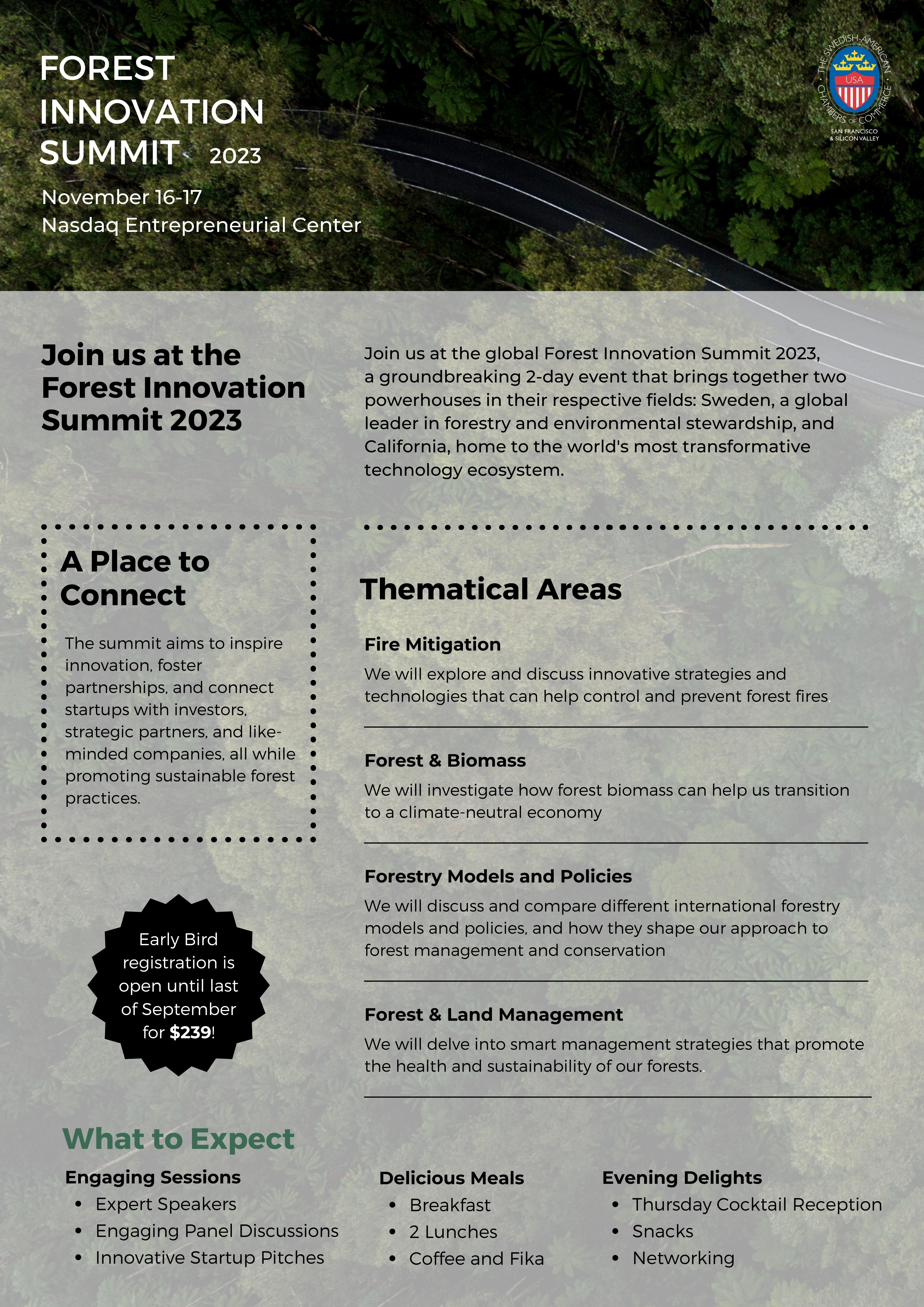 We are very excited to facilitate this first-of-its-kind Forest Innovation Summit. The topic of sustainable forests has increased over the years in both the public and private sectors. A sharp increase in ESG investments with a focus on sustainable forests can be seen in corporations worldwide.(4) We believe that this Summit has the potential of accelerating awareness and assisting our forests in healthy and fruitful growth.